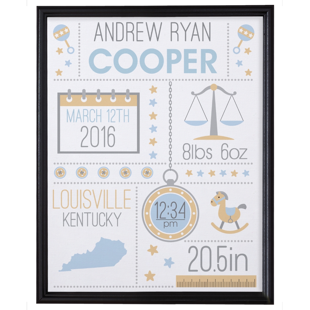 - Personalize with any name(s) up to 20 characters, last name up to 15 characters, date, weight, time, length, city and state
