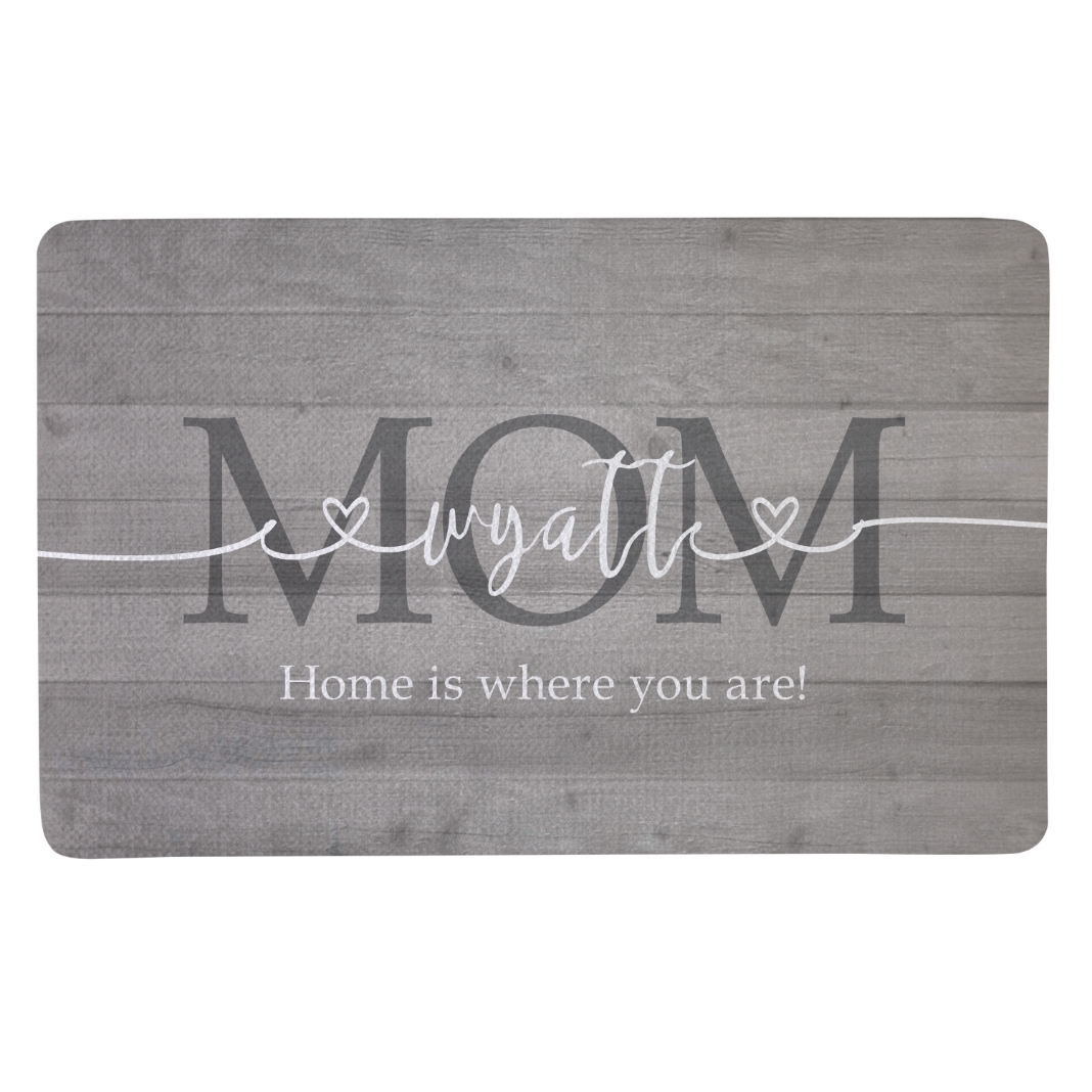 Let guests know who’s the glue that holds the family together with this totally charming doormat.
