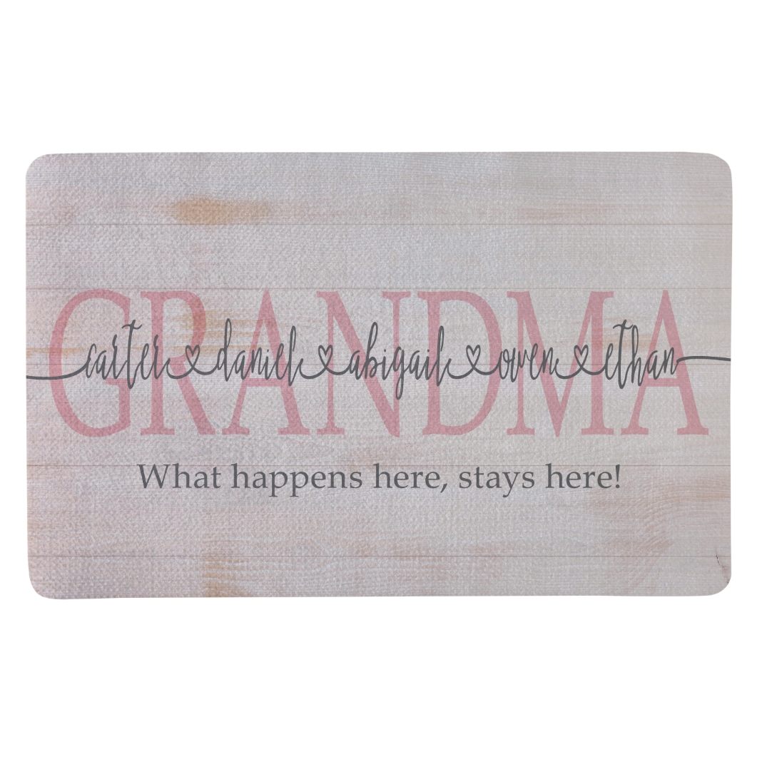 Let guests know who’s the glue that holds the family together with this totally charming doormat.