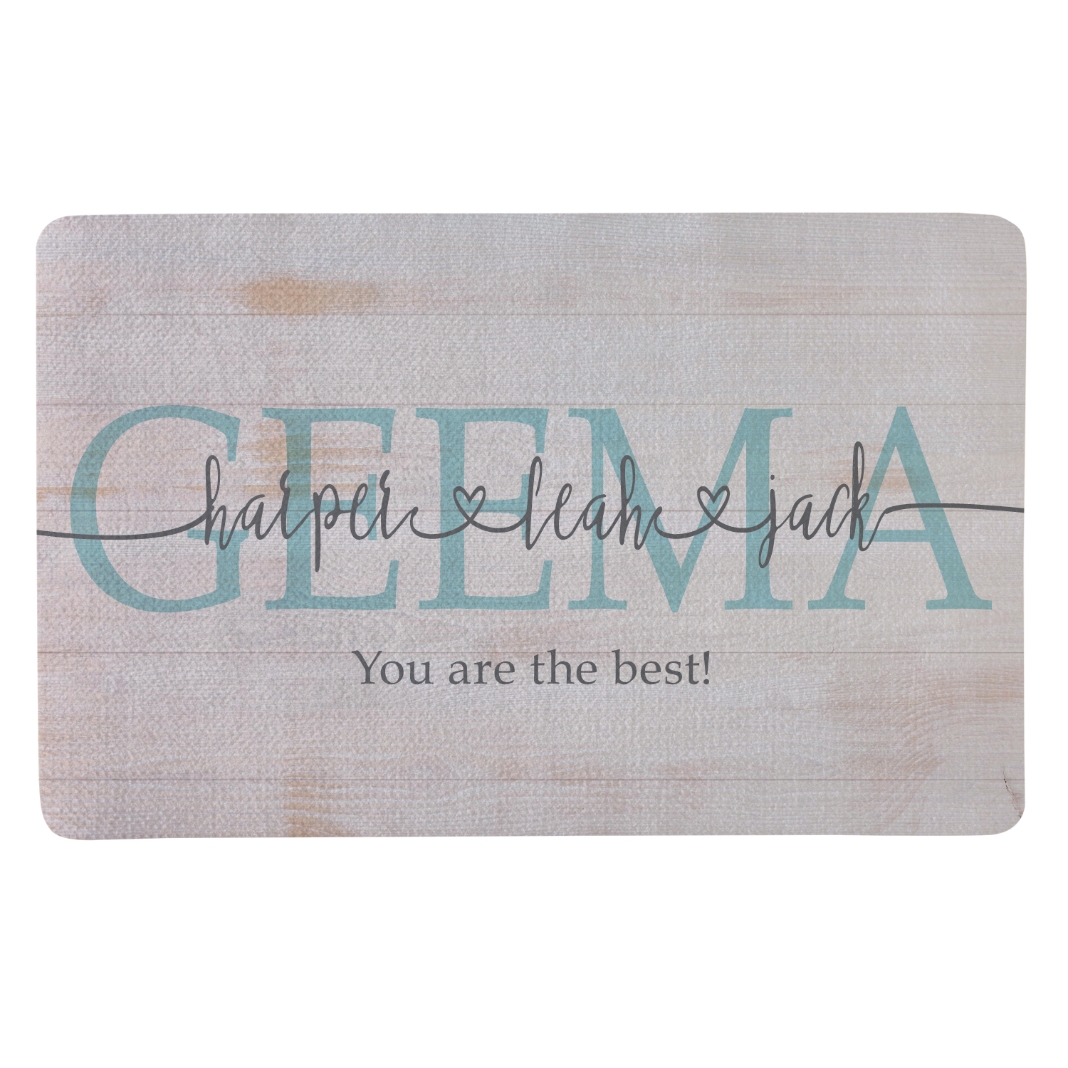 Let guests know who’s the glue that holds the family together with this totally charming doormat.