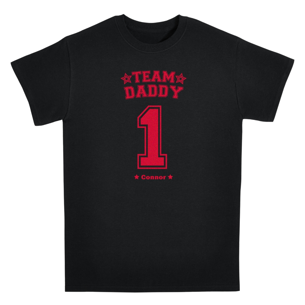 - Personalize with any team title (Daddy, Grandpa, etc.) up to 9 characters, number up to 2 digits and 1 to 20 names up to 9 characters each