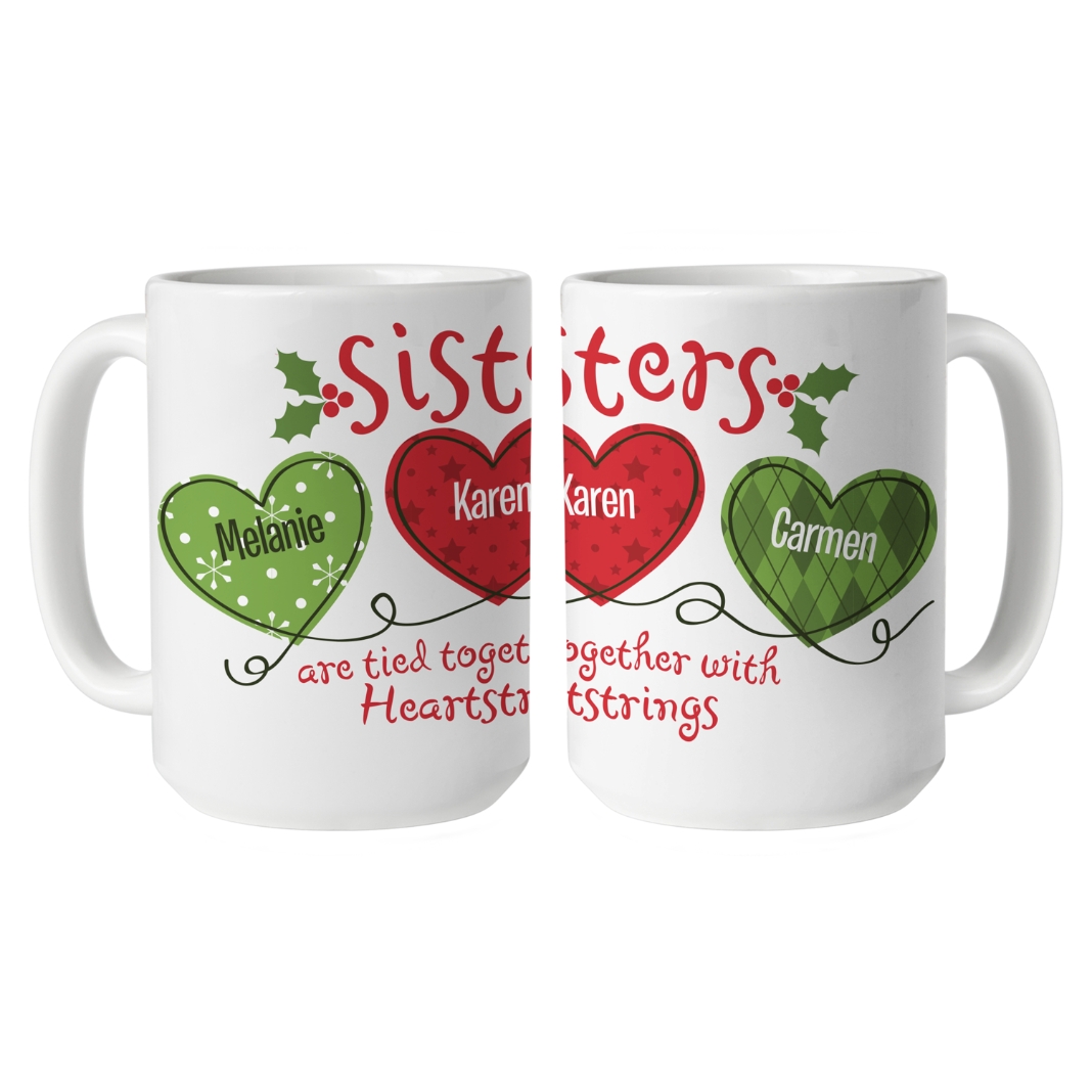 Holiday Heartstrings Mug - 15oz - White Handle - Sisters