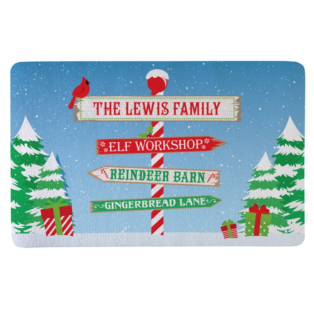 Show off your North Pole expertise on this merry and bright wayfinding doormat offering directions to the top holiday destinations.