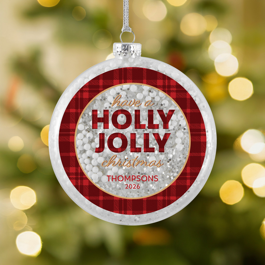 Holly Jolly Glitter Glass Ornament