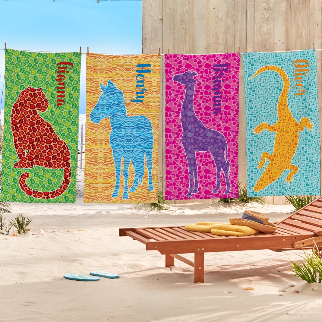 Turn up the heat and bring a little jungle flavour to the beach or garden with this boldly patterned and colourful towel.