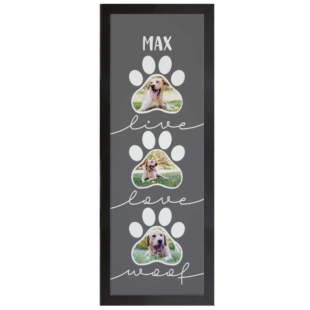 Live, Love Photo Paw Print Canvas - Woof - 9X27 - Framed