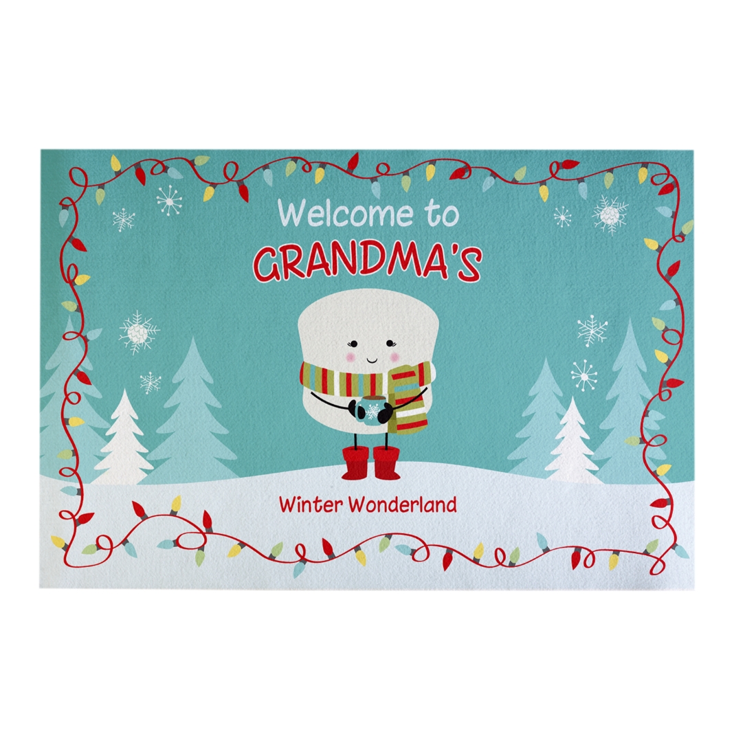 Lovable Marshmallow Holiday Doormat-24x36 Green Scarf