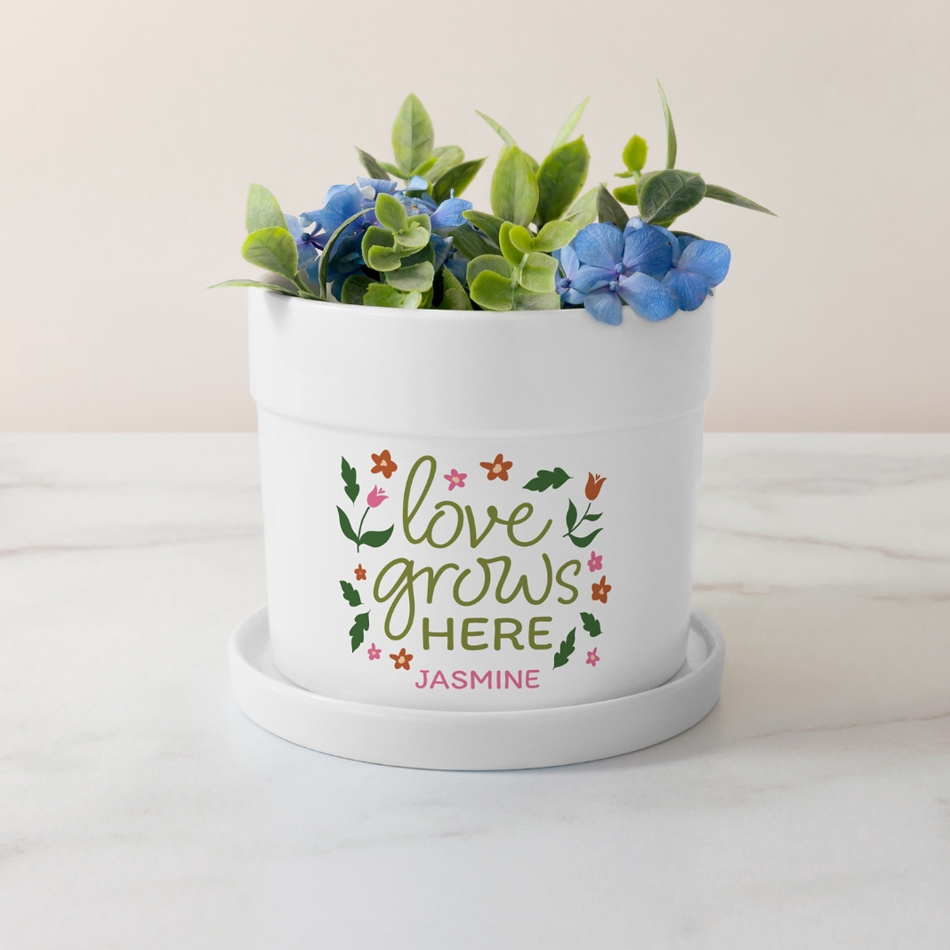 Love Grows Here Planter With Tray