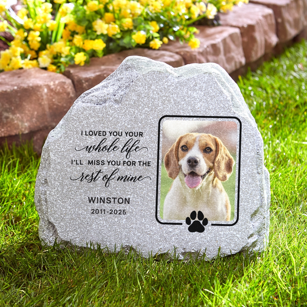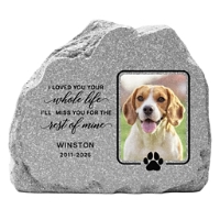 Remember a beloved pet after they've cross the rainbow bridge with a personalized standing garden stone. This durable tribute to any lost best friend will serve as a reminder of all the good times shared.