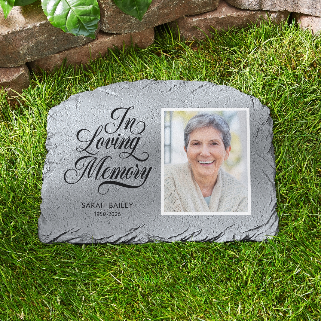 Create an outdoor space to remember a dearly departed loved one with a personalized garden stone featuring their photo. Enjoy reflecting on their life well lived and the legacy they left behind.