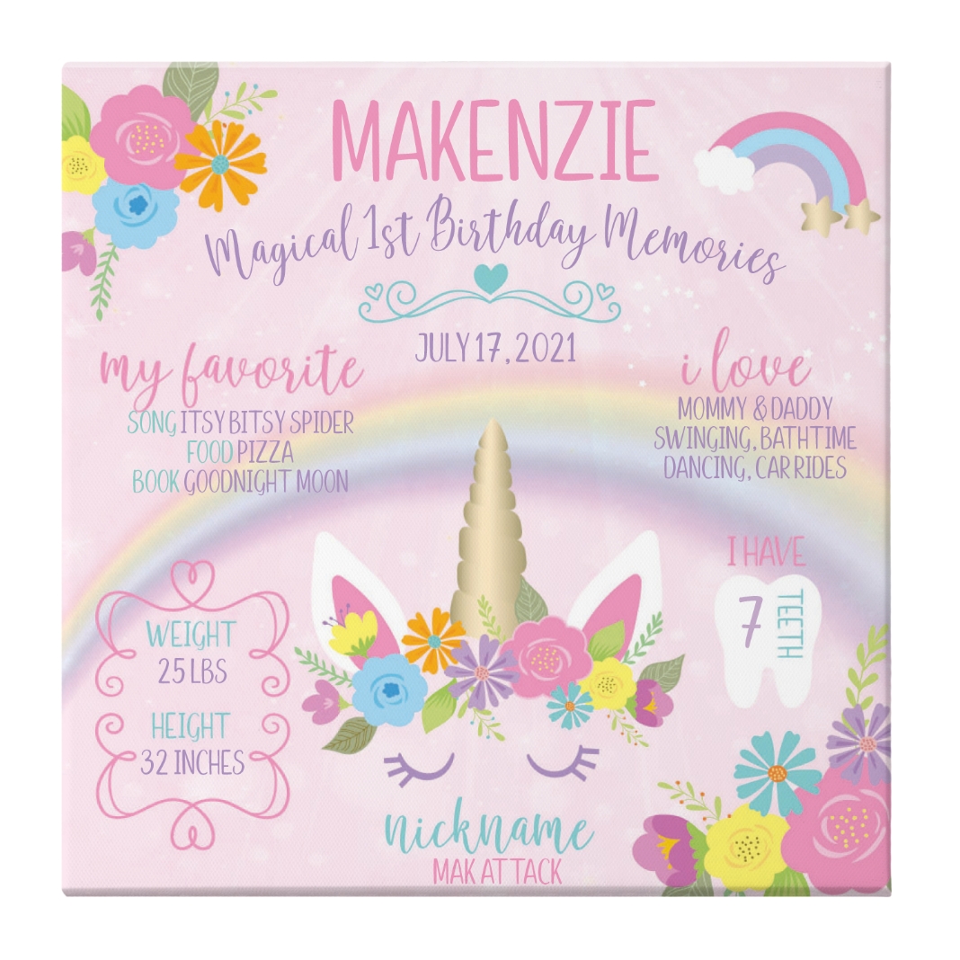 Make new birthday memories with this wondrous blend of rainbows, unicorns, flowers and favorite things.