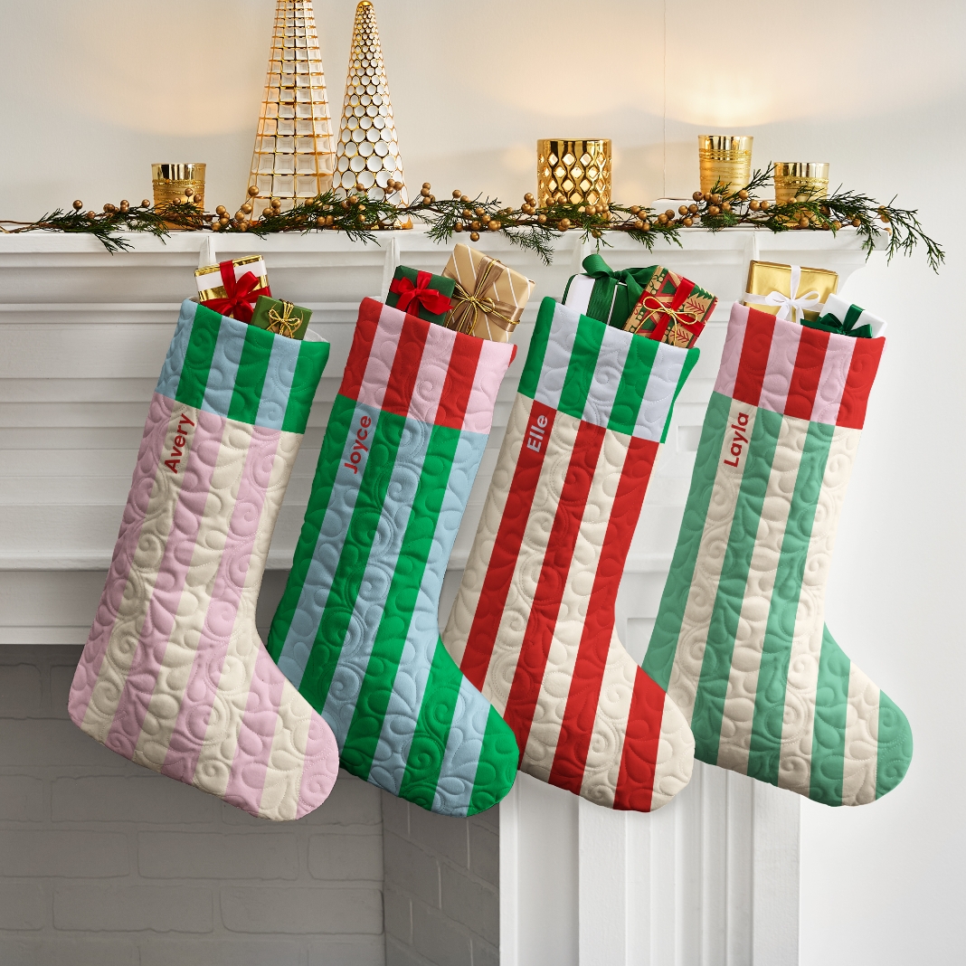A merry mashup of bold stripes! This stocking adds a playful and vibrant holiday spirit to your mantel.