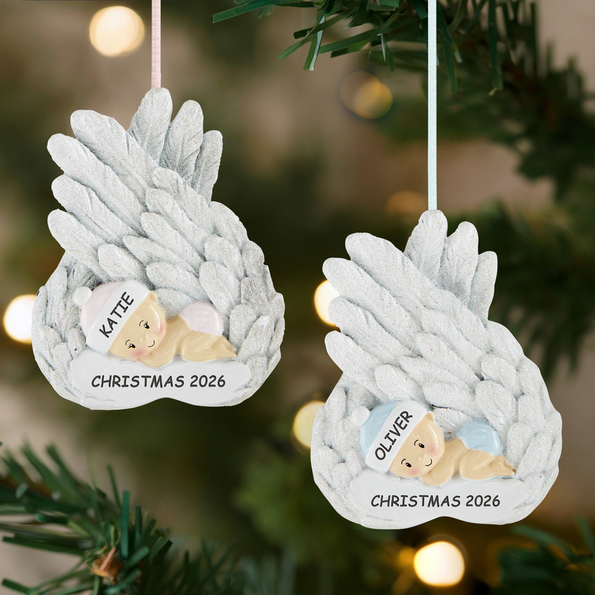 A bell must be ringing! Your little angel earned their wings and a place on the tree in honor of their first Christmas.