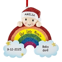 There’s something even more precious than a pot of gold at the end of this rainbow! Baby’s first Christmas ornament is a sparkling standout.
