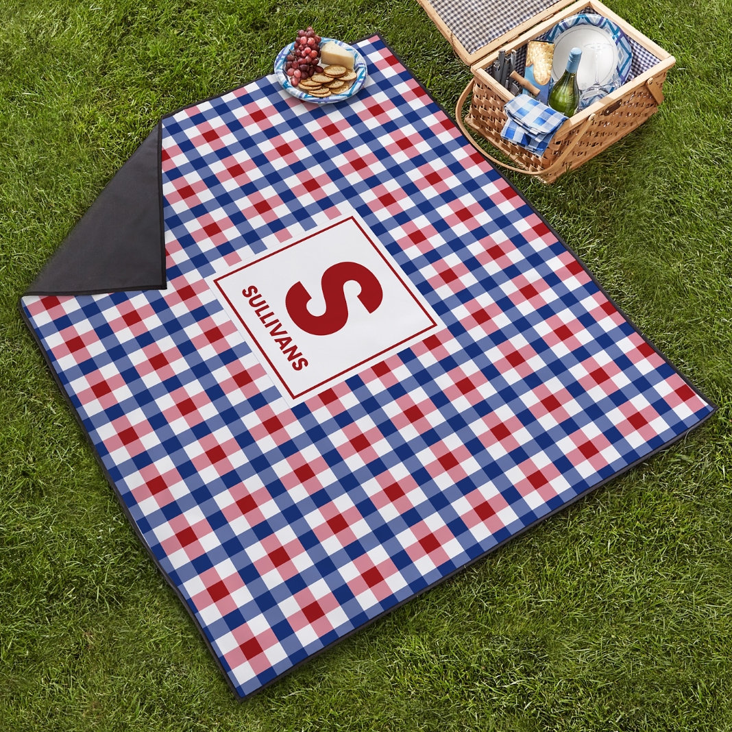 Make every outing a celebration with this cheerful picnic blanket. Its red, white and blue gingham pattern adds a festive touch to outdoor meals and gatherings.
