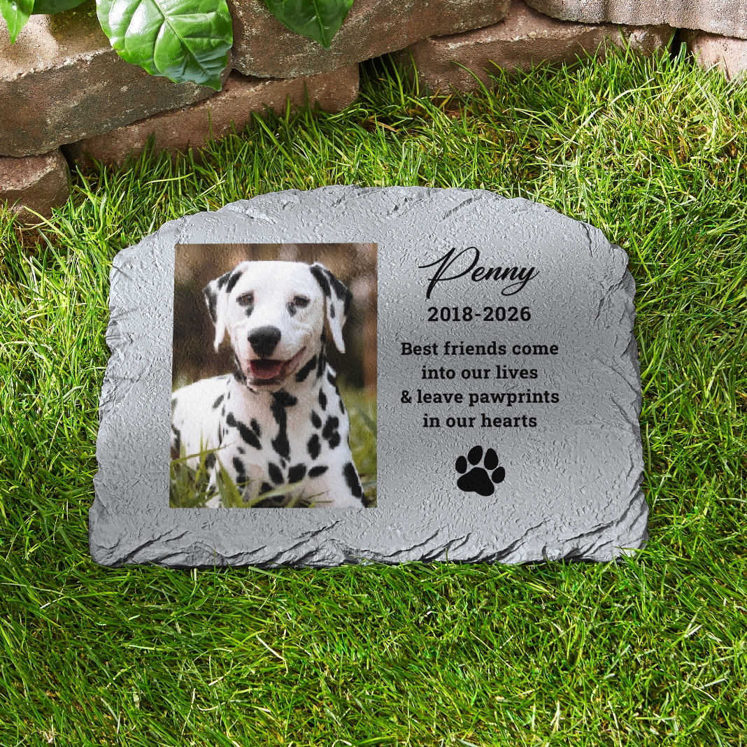 Provide an outdoor space for quiet reflection to honor a beloved dog or cat with a personalized garden stone. This picture-perfect memorial will help turn grief into joy.