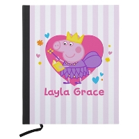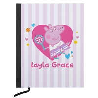 Colorful hearts, Peppa and laughter. Give them a personalized notebook that's so fun, they'll never want to stop writing in it!