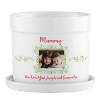 Mums love flowers. But she'll enjoy them even more in this pretty pot with your gorgeous photo and sweet message.