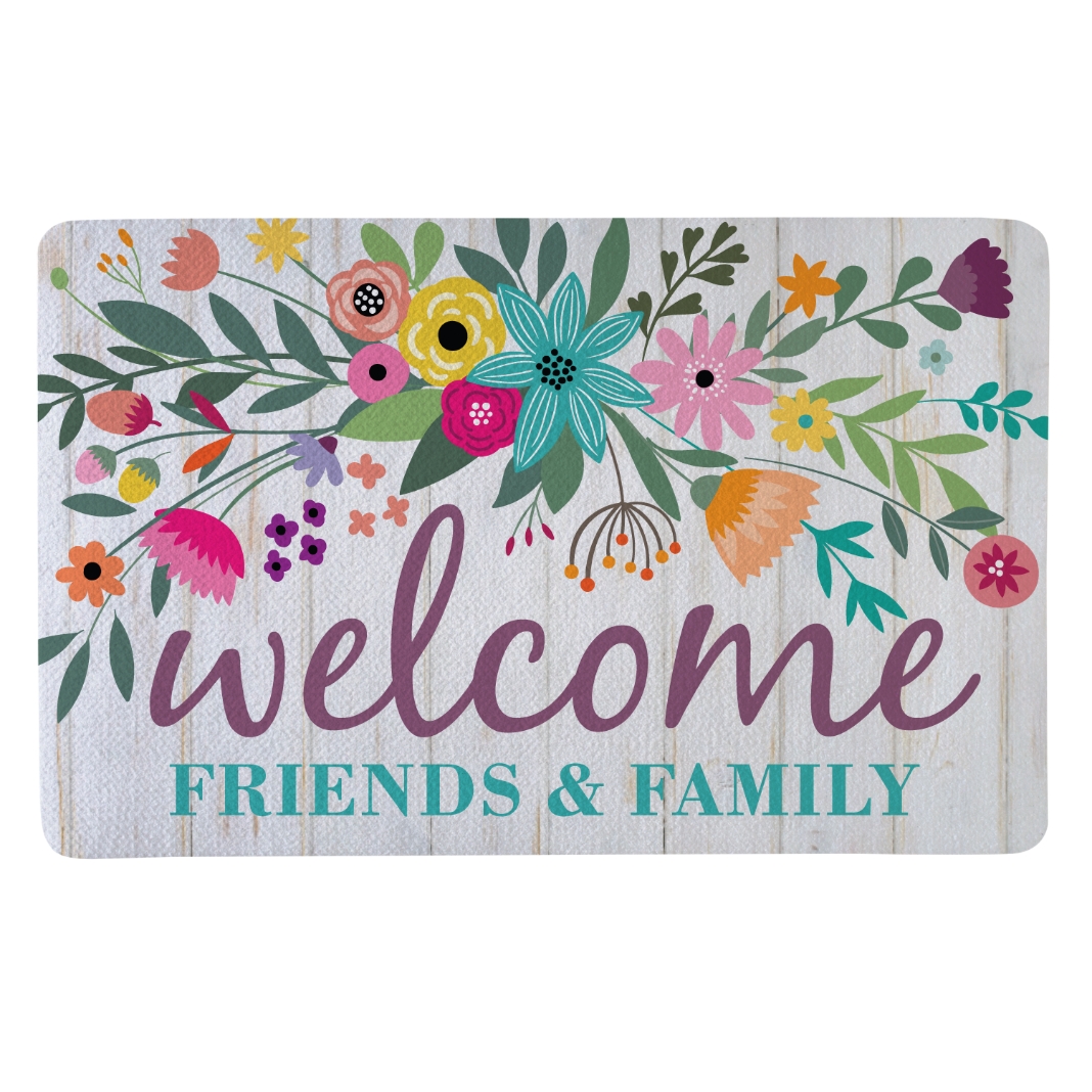 Bursting with vivid blooms on a rustic barnboard background, our doormat welcomes guests with the colors and beauty of spring.