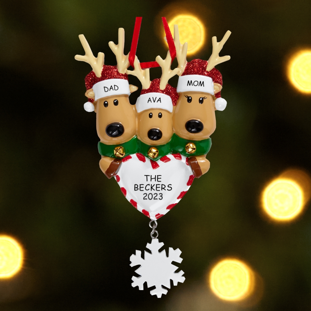 - Personalize 2 to 6 reindeer with names up to 9 characters each, 1-2 line message up to 12 characters each and numeric year up to 4 digits
