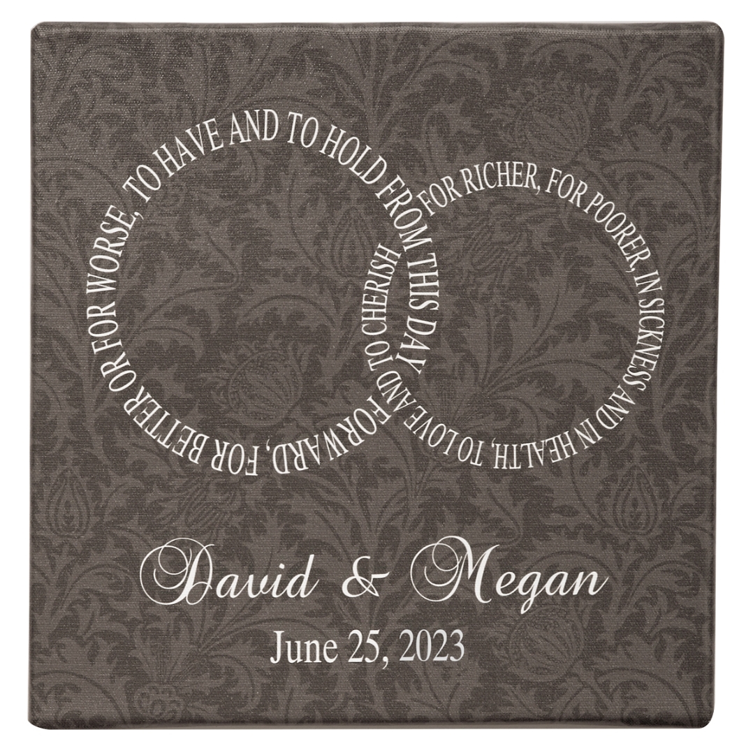 Our striking work of wedding art features intertwined rings created from their sacred vows.