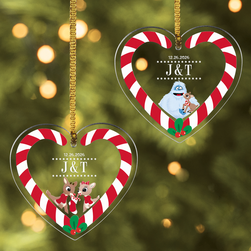 Rudolph® Candy Cane Acrylic Heart Ornament