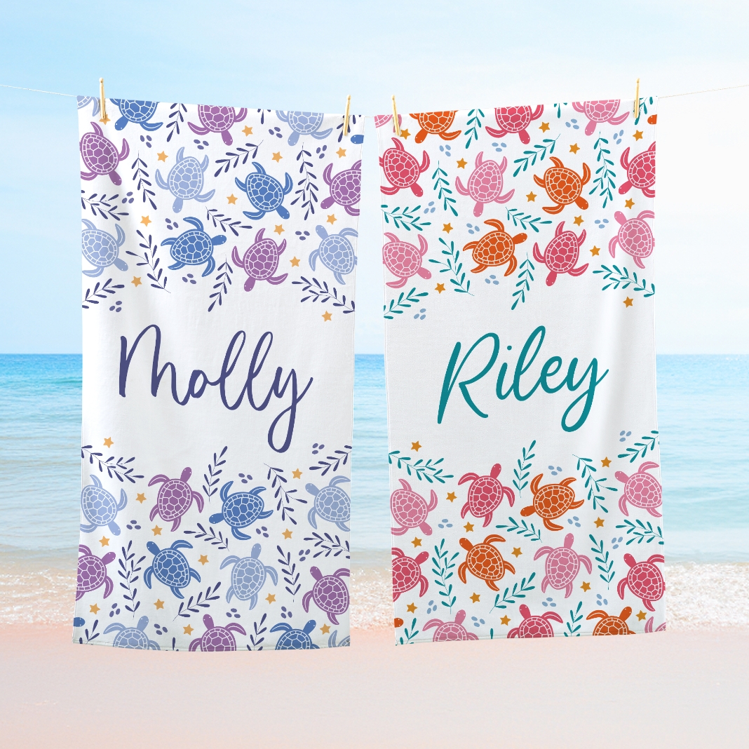 Hit the beach in style with this towel. Covered in a playful turtle design and their name, it’s ideal for sun-soaked adventures.