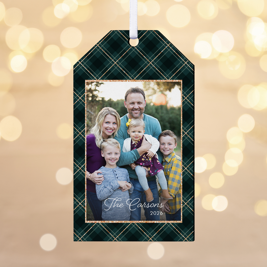 Add your favorite photo to this classic backdrop, add some sparkle and voila! A perfectly personalized Christmas tree ornament that they're sure to love.