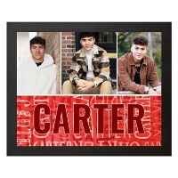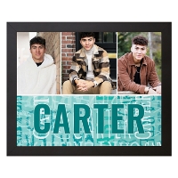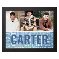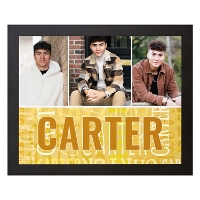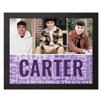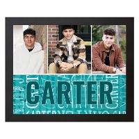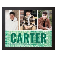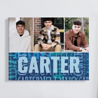 Showcase favorite photos with a custom canvas that arrives ready to displayed in any room. Add multiple images, select a color and add a name to repeat across the bottom for a playful, personalized touch.