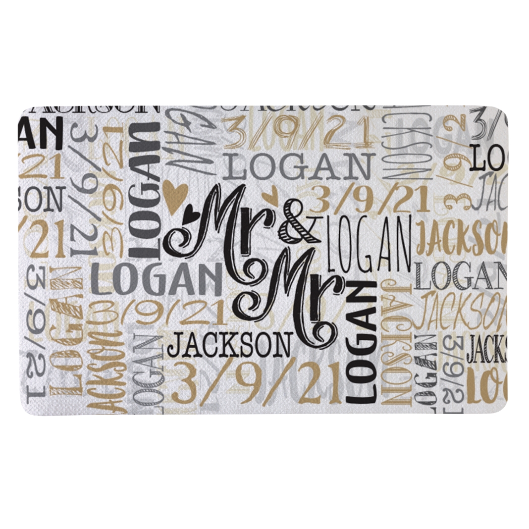 Signature Style Wedding Couple Doormats - White/Gold - Mr/Mr - 17x27