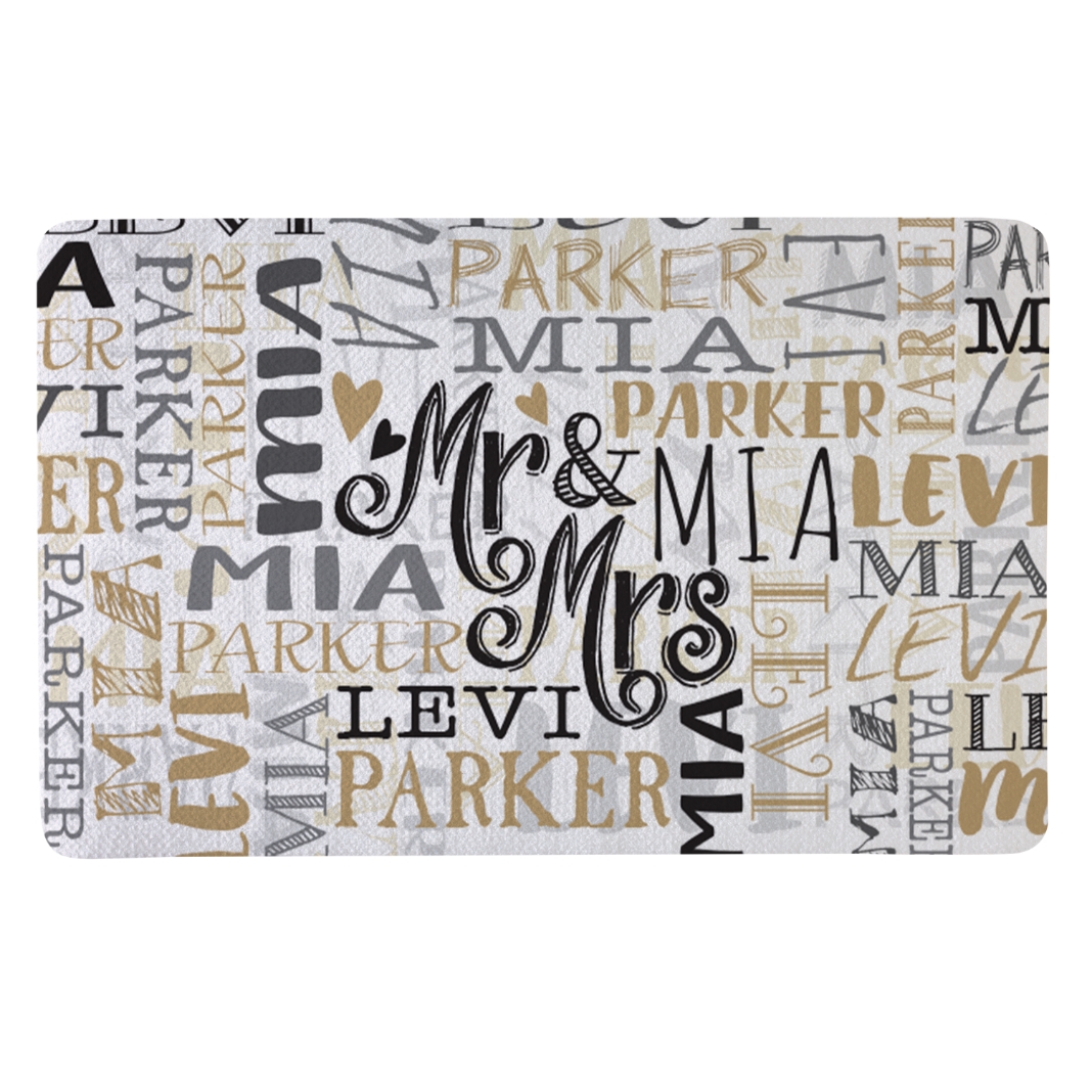Time for some serious name dropping! Put the newlyweds front and center with this sophisticated doormat.