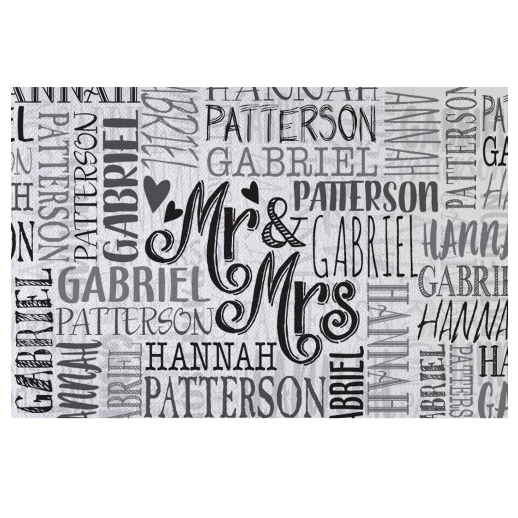 Time for some serious name dropping! Put the newlyweds front and center with this sophisticated doormat.