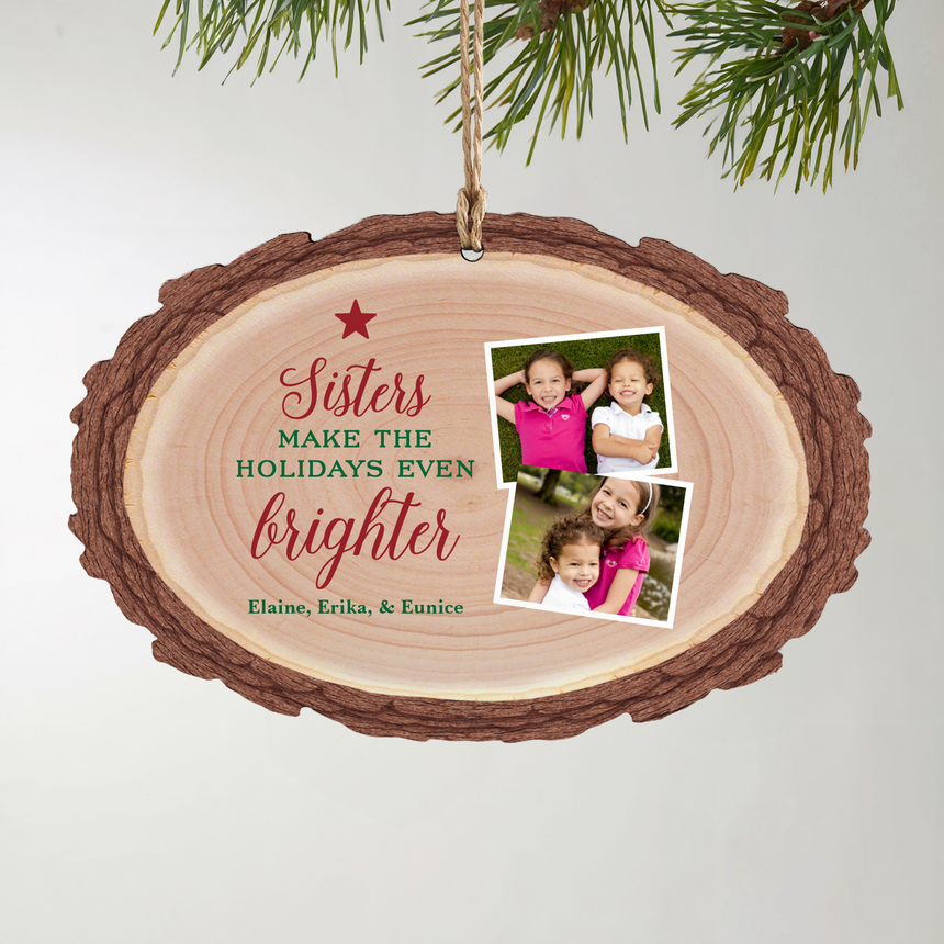 For the one who's been there through it all. This ornament adds cheerfulness to your tree with its rustic design and sweet reminder of sisterly love, laughter and lifelong memories.