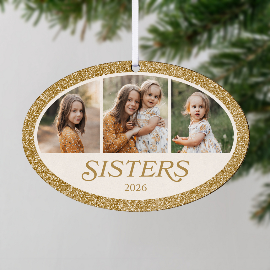Celebrate the bond that's picture-perfect! Showcase your favorite memories together on this ornament. Because every sisterly laugh, hug and heart-to-heart deserves a spot on the tree.
