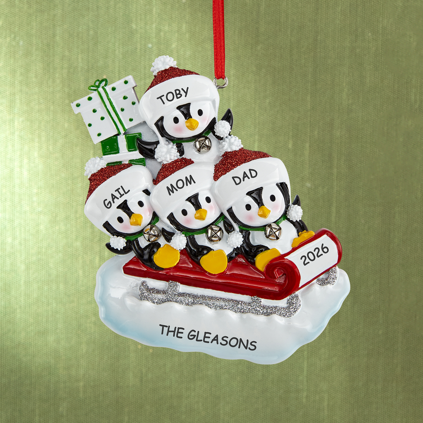Gather your penguin family and hop aboard for a sleigh ride on the tree. It’s a wintry fun way to remember this year.