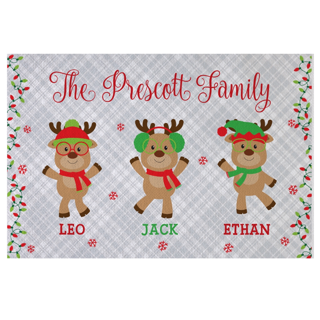 Move over Dasher, Dancer, Prancer and Vixen, there are some new reindeers in town! Your "deer" family offers holiday greetings on this eye-catching mat.