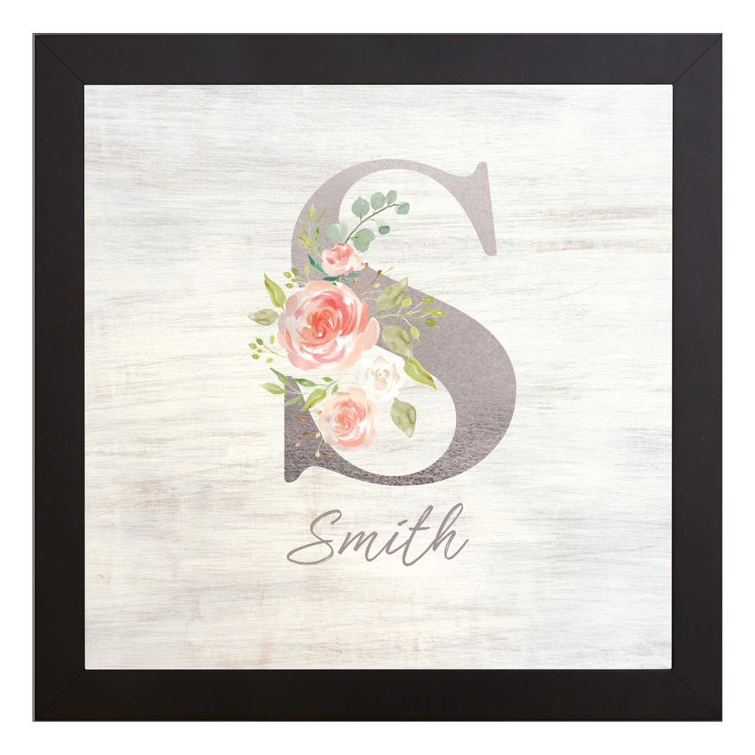 Sophisticated Floral Family Name Framed Canvas - Silver 16x16