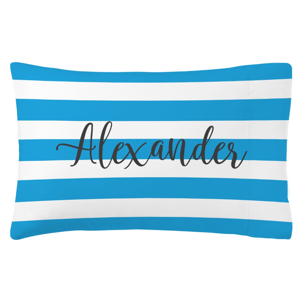 Striped Name Plush Pillowcase - Blue