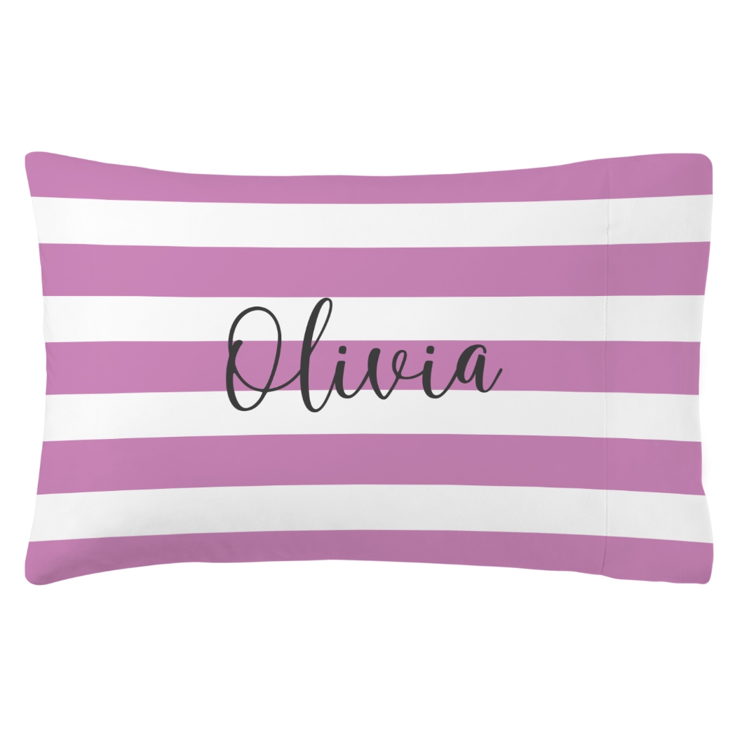The star of this fun pillowcase? The name on it—and the vibrant hues tweens and teens will love.