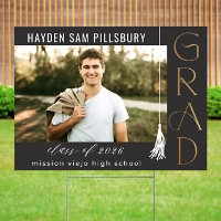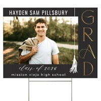 Tassel turned, success earned! This custom photo yard sign puts your grad’s smile front and center.