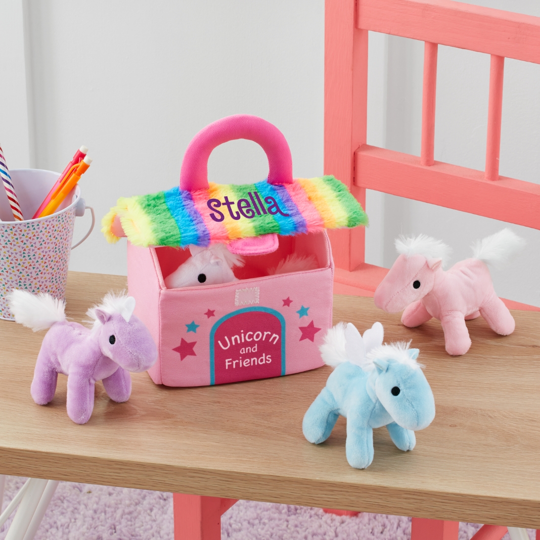 This bright rainbow barn full of magical creatures will keep little ones mesmerized for hours. Each animal makes a fun sound for interactive play.