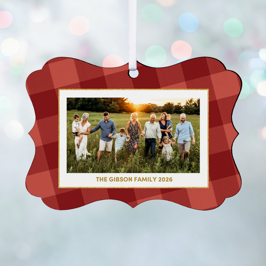 Vintage Plaid Photo Scroll Ornament
