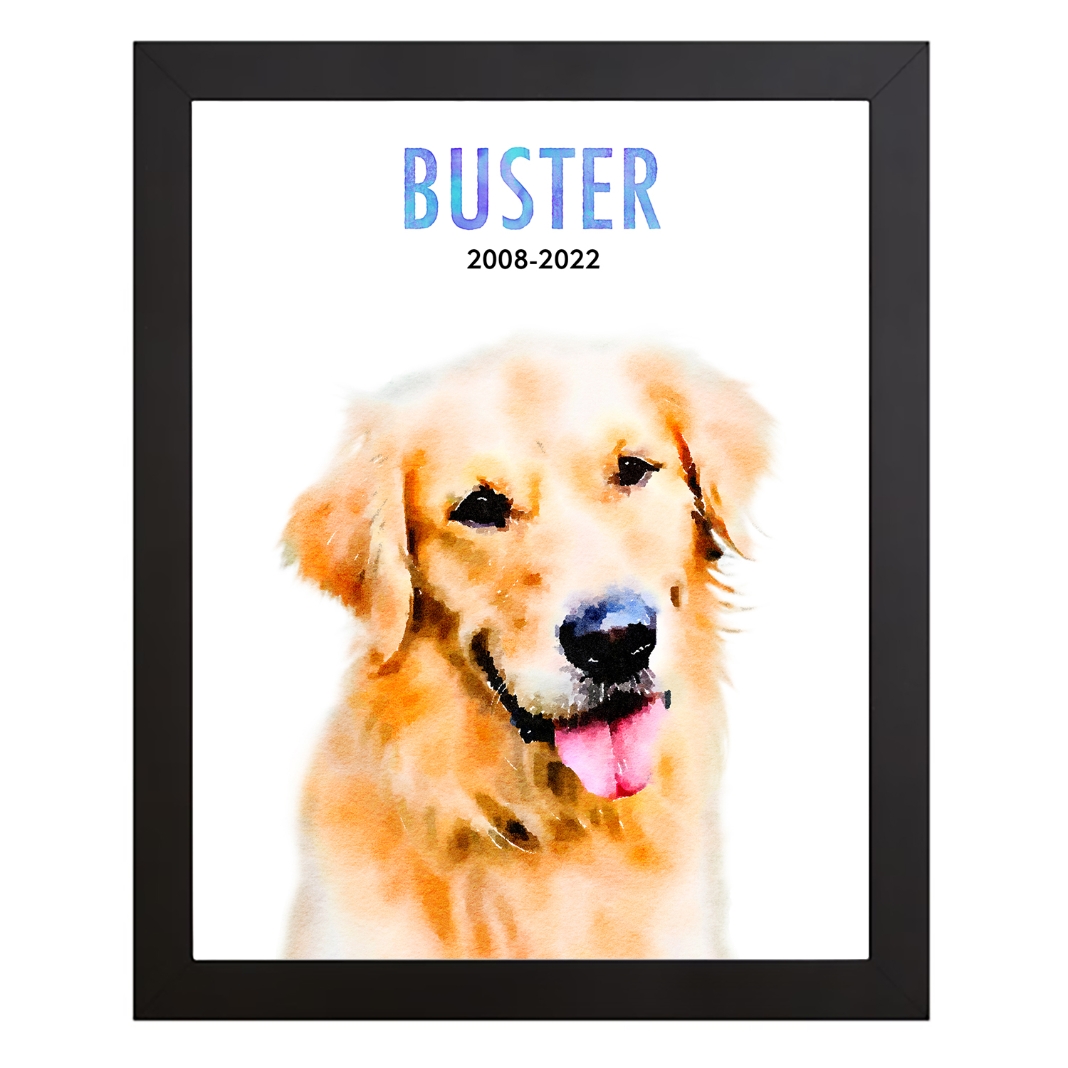 Watercolor Pet Portrait-Blue-Framed-Name & Date-11x14