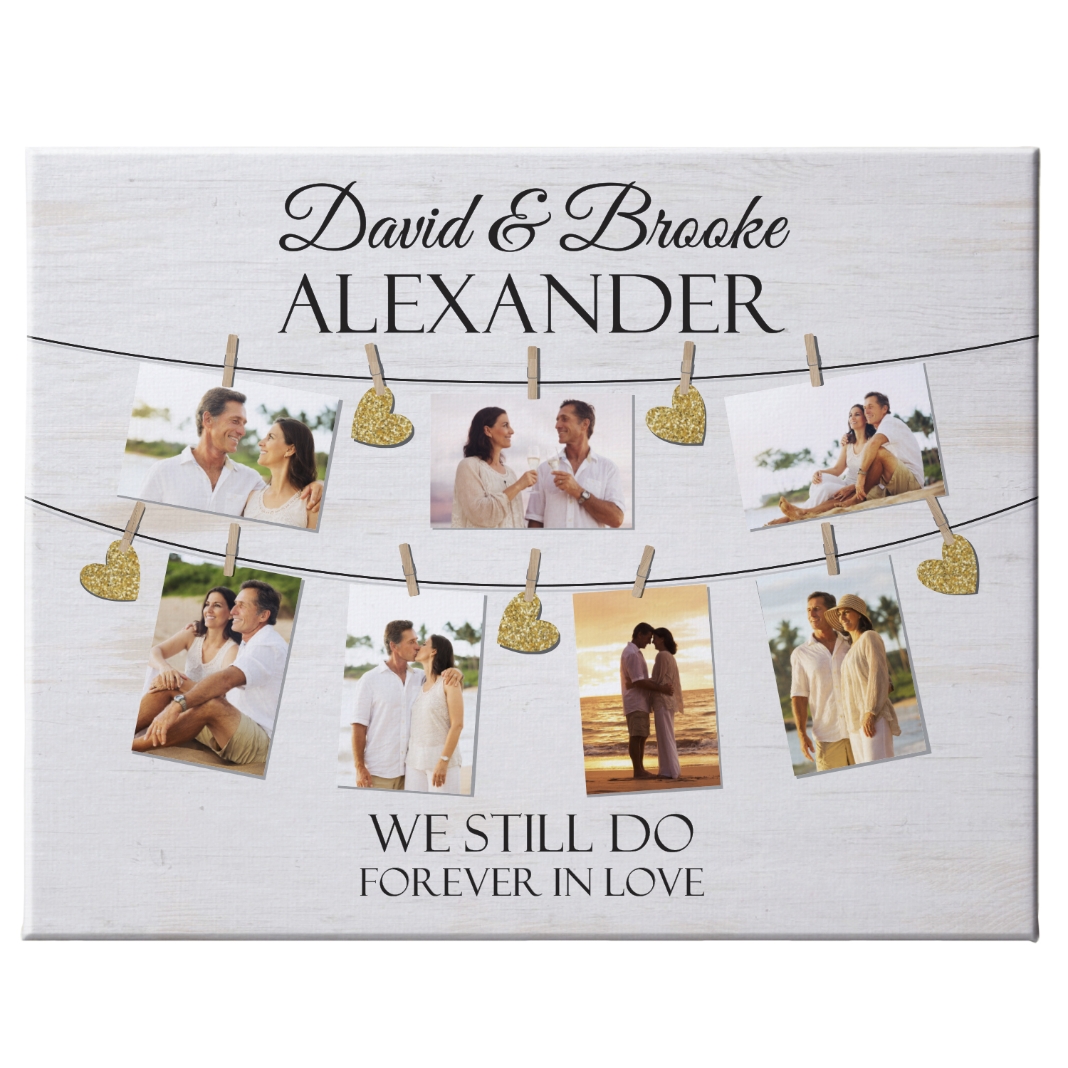 We Belong Together Anniversary Photo Canvas - 11X14 - Gold Hearts