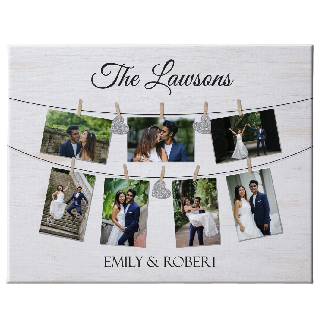 We Belong Together Wedding Photo Canvas - 11X14 - Silver Hearts
