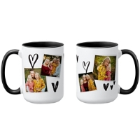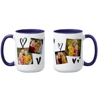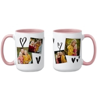 Start every sip with a smile. This custom photo mug features four favorite photos framed by whimsical heart details, creating a sweet, personal design. A thoughtful gift that turns everyday moments into something meaningful.