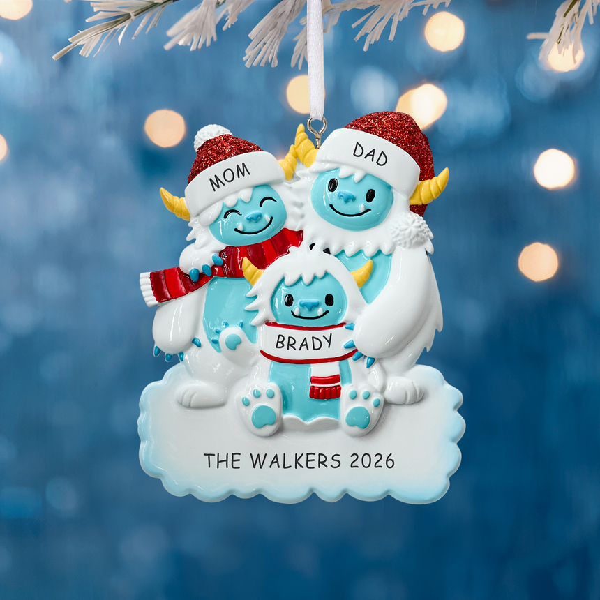 What's more Christmassy than a snowy setting and a yeti? A whole yeti family of course! Add all the members of your family to this whimsical and fun ornament for a special holiday touch.