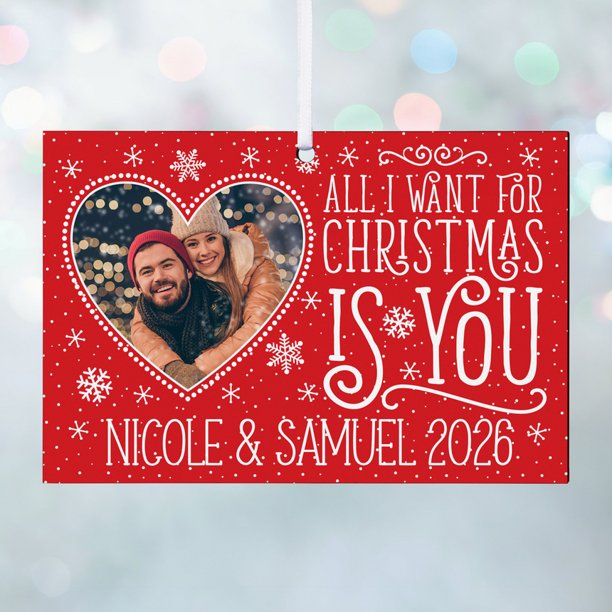 Santa's sleigh bells may be ringing, but you've already got your special present right by your side! This custom ornament will be a reminder of your love, year after year.