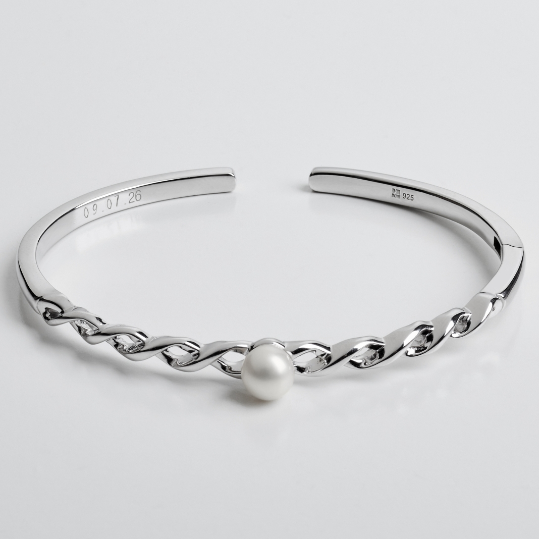 A lustrous pearl dangles from the center of the twining infinity design symbolizing the beauty and everlasting nature of your love. Engrave the inside of the cuff with your own meaningful message to create a stunning custom gift she will wear forever. Exclusively from RedEnvelope.