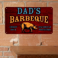 • Personalization will appear as enteredSmokin' Hot BBQ Metal SignMeasures 8"H x 14"W